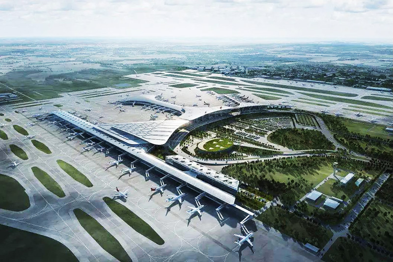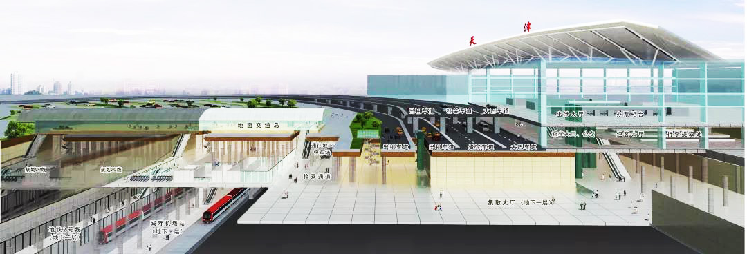 天津濱海國際機場擴建配套交通中心工程位于天津市東麗區天津濱海國際機場T1航站樓北側進出港廣場及其東側的空地下,該工程總投資22.4億元,總建筑面積11.28萬m2,是集航空、高鐵、市域快軌、地鐵、公交、出租等多維立體交通于一身的大型地下交通樞紐。