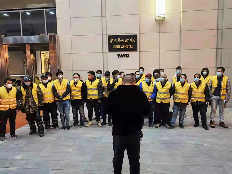 2021年1月15日18:00時(shí),天津三建公司二分公司接到天津市河西區(qū)住建委改造津利華大酒店作為新冠疫情集中隔離點(diǎn)的緊急命令。二分公司黨總支緊急部署,迅速成立樾梅江項(xiàng)目黨支部和張家窩南站黨小組為主的戰(zhàn)斗小組,緊急動(dòng)員黨員干部奔赴施工現(xiàn)場(chǎng),調(diào)集勞動(dòng)力和施工物資,黨支部書記劉鈁,以及王軍、張宇、邢勝,邢建公,李盛等黨員干部分別從各自的工作崗位、家中向津利華酒店集結(jié),邊開(kāi)車邊組織勞動(dòng)力和施工物資、車輛,僅僅一個(gè)小時(shí),350人的應(yīng)急勞務(wù)大軍和各種施工物資全部集結(jié)到位。