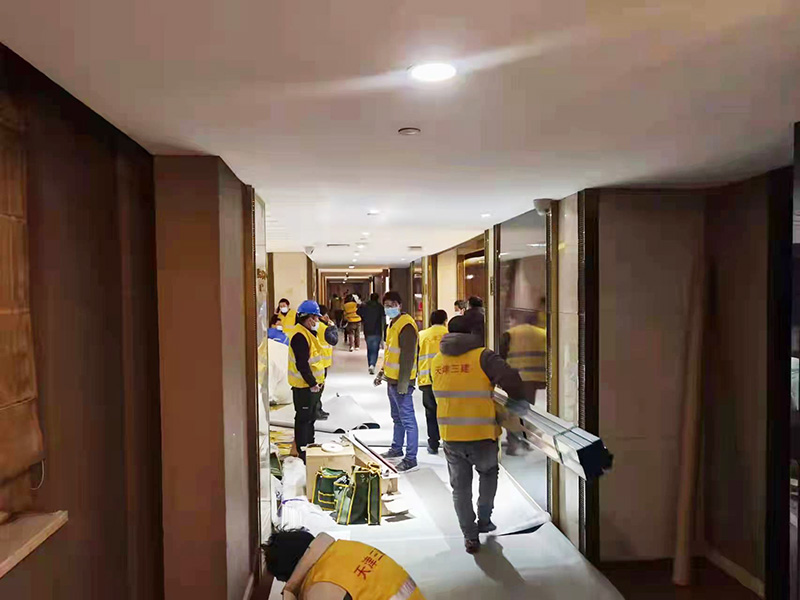 根據(jù)天津市疫情防控指揮部要求,將近兩萬(wàn)平方米,200余間的客房改造任務(wù)必須在24小時(shí)內(nèi)完成并交付使用,時(shí)間緊、責(zé)任重,工作量大。全體參戰(zhàn)黨員干部身兼重任,牢記“疫情就是命令、防控就是責(zé)任”的要求,黨總支書記趙善伯、支部書記劉鈁親自上手,帶領(lǐng)黨員干部分層、分段負(fù)責(zé),連續(xù)18個(gè)小時(shí)徹夜奮戰(zhàn),更換所有共同區(qū)域地膠、樓梯間、疫情通道隔墻板,設(shè)置各樓層消殺照明、應(yīng)急照明等設(shè)施,提前兩個(gè)小時(shí)干凈整潔交付給市疫情防控指揮部,得到了市疫情指揮部、河西區(qū)住建委、酒店管理的高度肯定和贊揚(yáng)。
