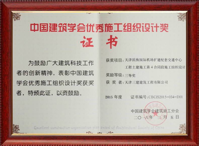 2016施工組織三等獎(jiǎng)