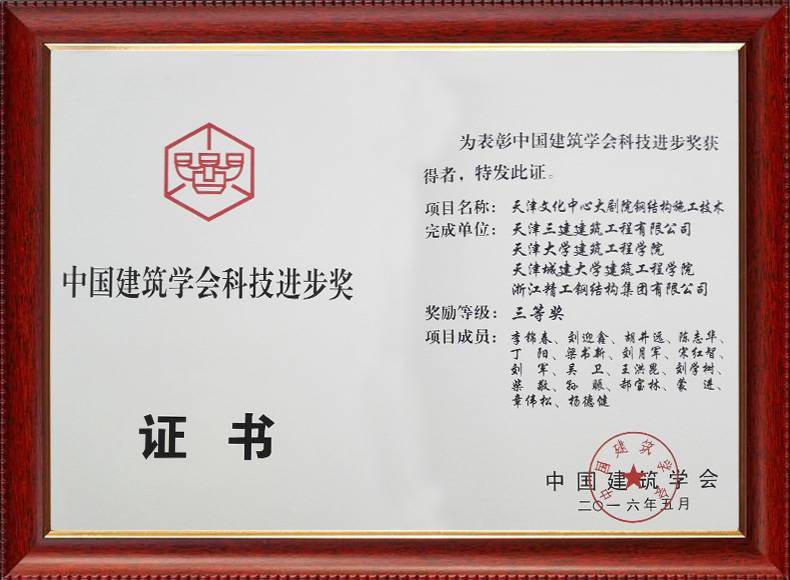 2016中國(guó)建筑學(xué)會(huì)科技進(jìn)步三等獎(jiǎng)