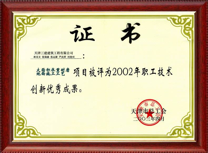 2003年總工會(huì)創(chuàng)新大面積承重耐磨地面施工工藝