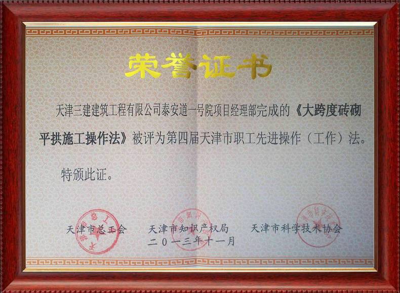 2013年先進(jìn)操作法獎(jiǎng)狀